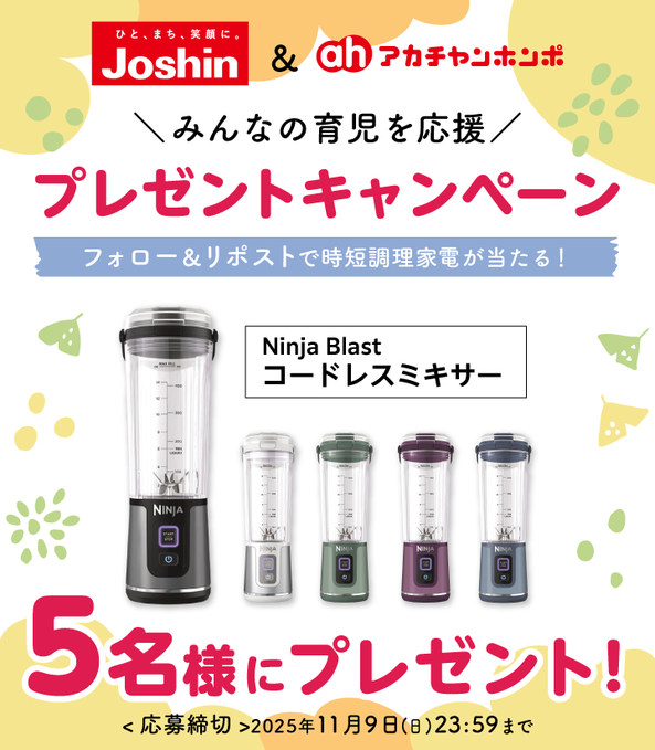 @joshin_infoと@akachanhonpoをフォロー&キャンペーン対象ポストをリポストしてご応募ください。