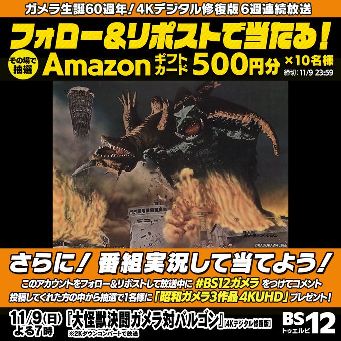 BS12映画公式X(Twitter)アカウントをフォロー&キャンペーン対象ポストをリポストして、記載されているURLからご応募ください。