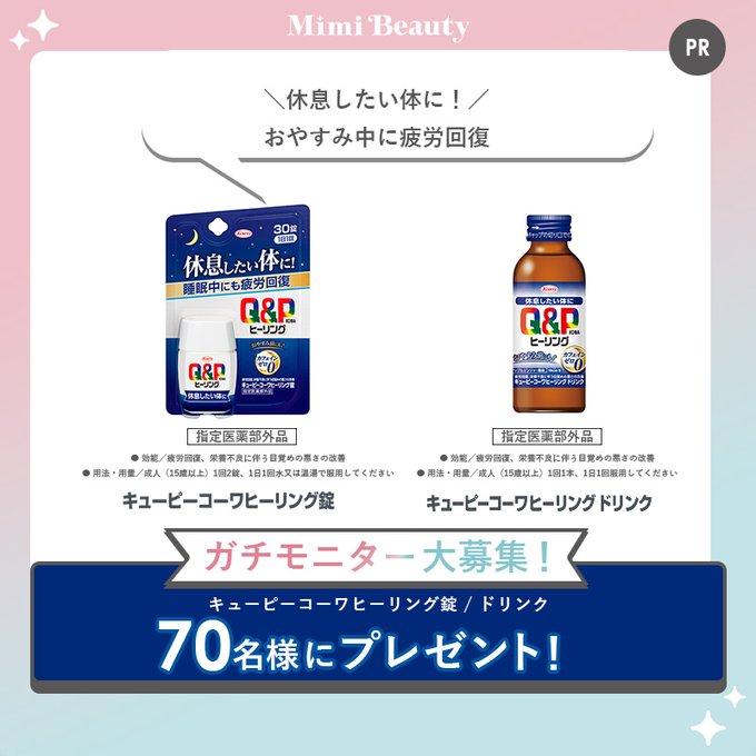 賞品:キューピーコーワヒーリング錠 / ドリンク(70名様)