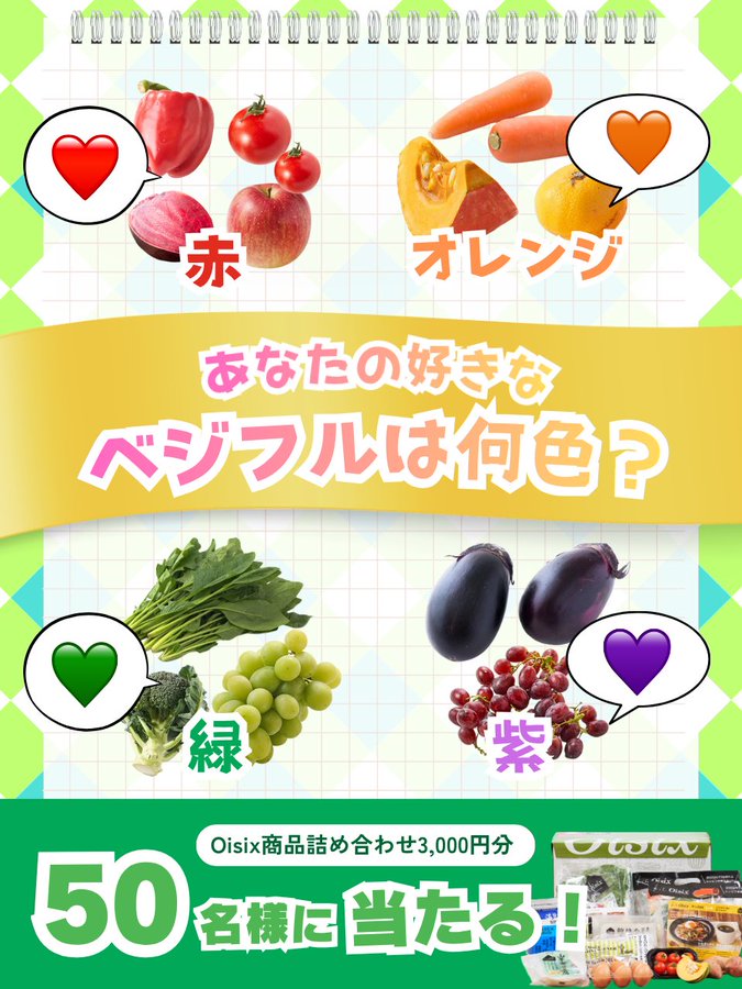賞品:Oisix人気商品詰め合わせセット(3,000円相当)(50名様)