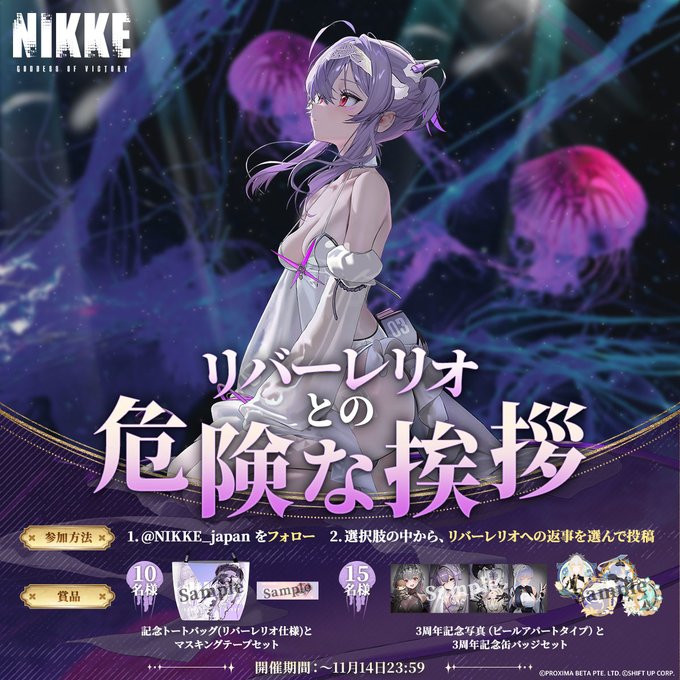 @NIKKE_japanをフォローし、カードから返事を選んで投稿すると賞品が当たるチャンスも🎁