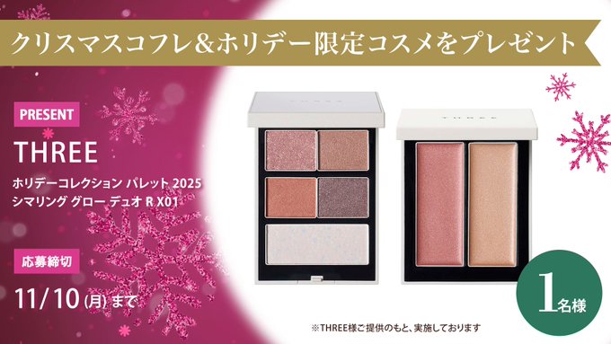 賞品:THREE ホリデーコレクション パレット 2025&シマリング グロー デュオ R X01(1名様)