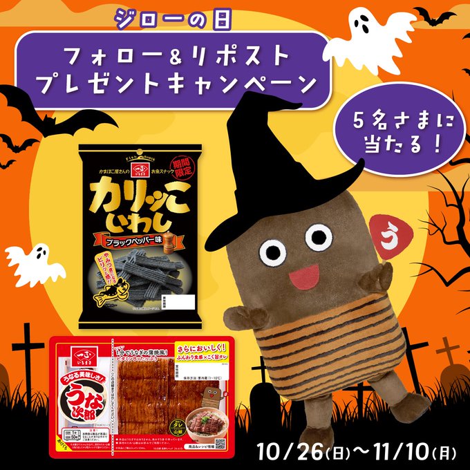 賞品:カリッこいわし ブラックペッパー味&うな次郎 長持ちパック(5名様)
