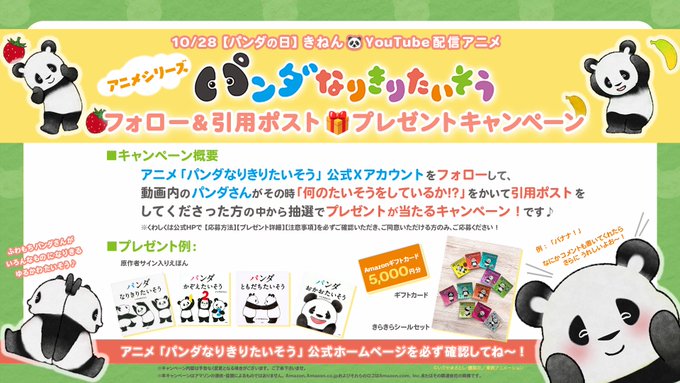 YouTube配信アニメ「パンダなりきりたいそう」フォロー&引用ポストキャンペーン