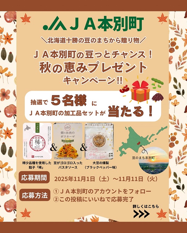 JA本別町の豆っとチャンス!秋の恵みプレゼントキャンペーン
