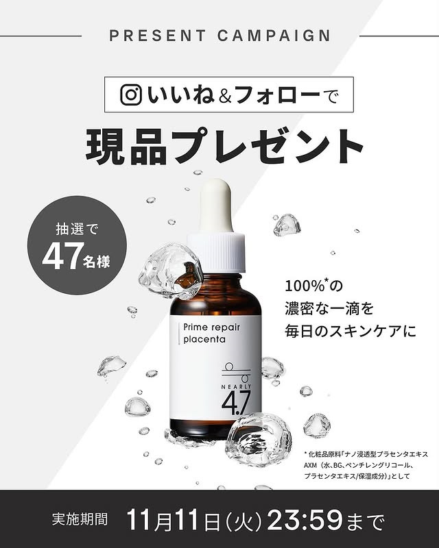 【Instagram懸賞】プライムリペアプラセンタ原液 30mLを47名様にプレゼント