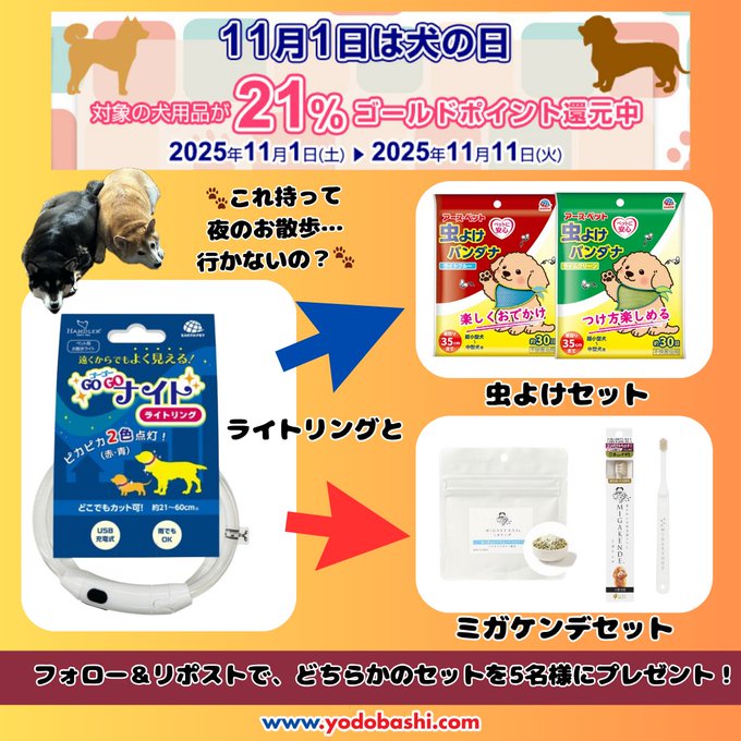 賞品:ライトリングと虫よけorミガケンデセット(5名様)