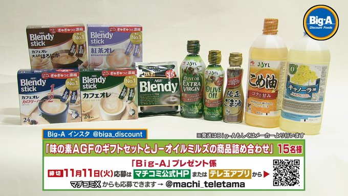 賞品:味の素AGFギフトセットとJ-オイルミルズの商品詰め合わせ(15名様)