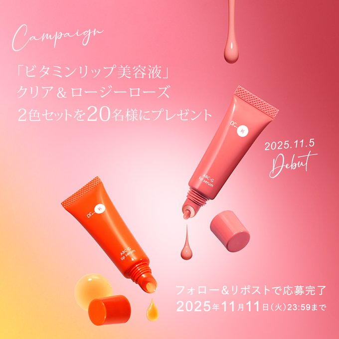 賞品:「ABC-Gリップセラム クリア」と新色「ロージーローズ」(20名様)
