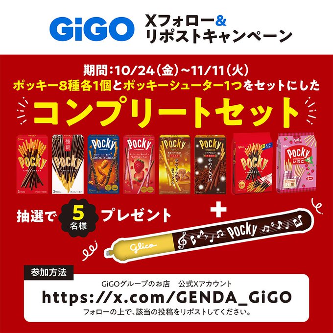 賞品:ポッキー8種各1個+ポッキーシューター1つ(5名様)
