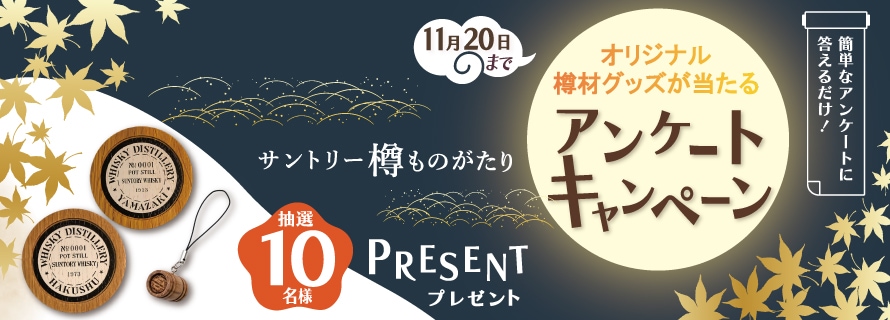 賞品:サントリー樽ものがたり オリジナル樽材グッズ(10名様)