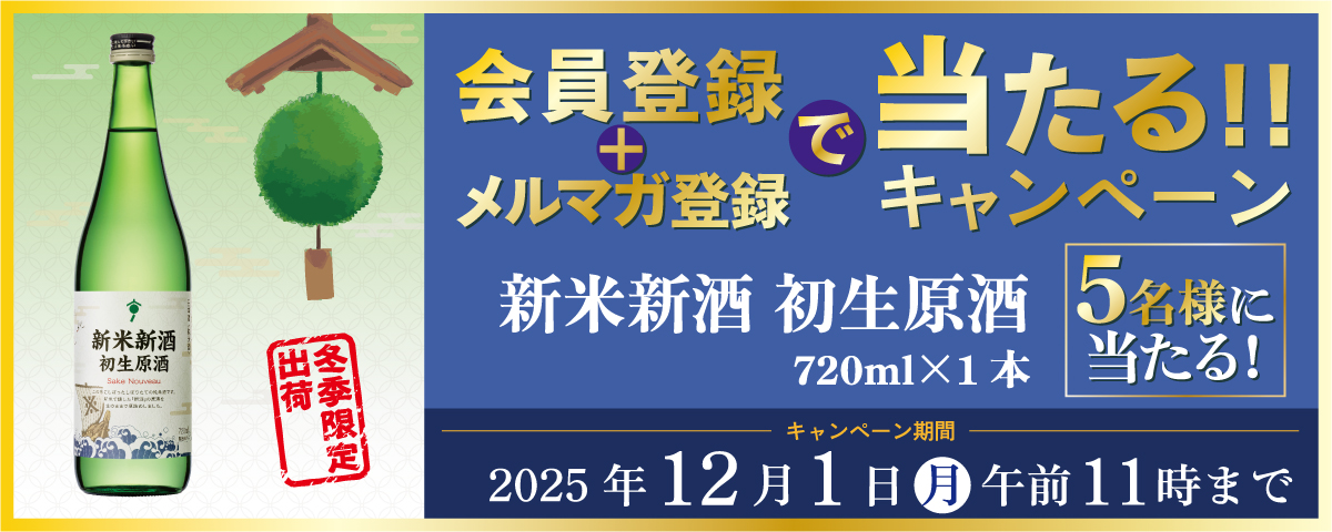 新米新酒 初生原酒 720mlを5名様にプレゼント 2025.11.10 2025.11.09沢の鶴公式オンラインショップ‐会員登録&メルマガ登録で当たる!キャンペーン 賞品:新米新酒 初生原酒 720ml(5名様) 締切:2025年12月1日(月)午前11:00会員登録&メルマガ登録で当たる!※詳細はキャンペーンページにてご確認ください。応募はこちらから