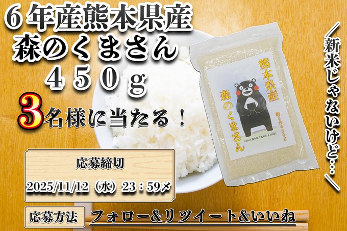 賞品:6年産熊本県産森のくまさん450g(3名様)