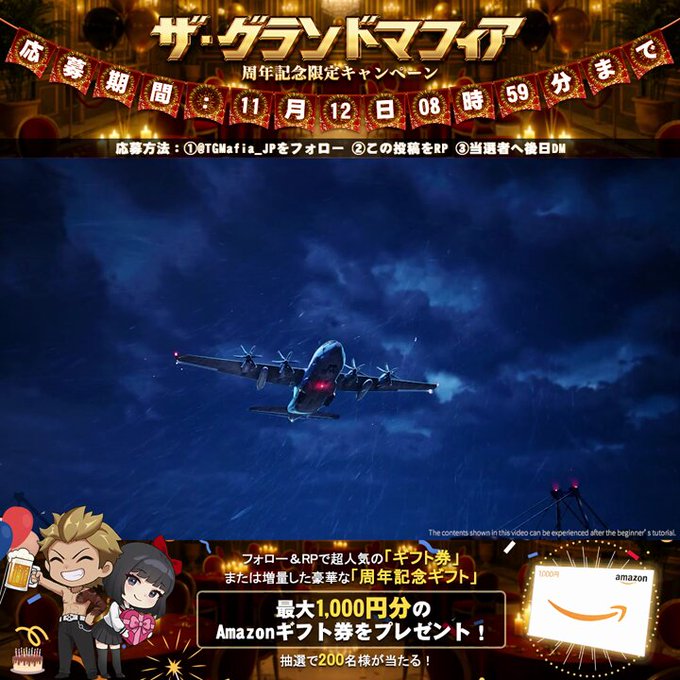 賞品:最大1,000円分のAmazonギフト券またはゲーム内の周年記念ギフト(200名様)