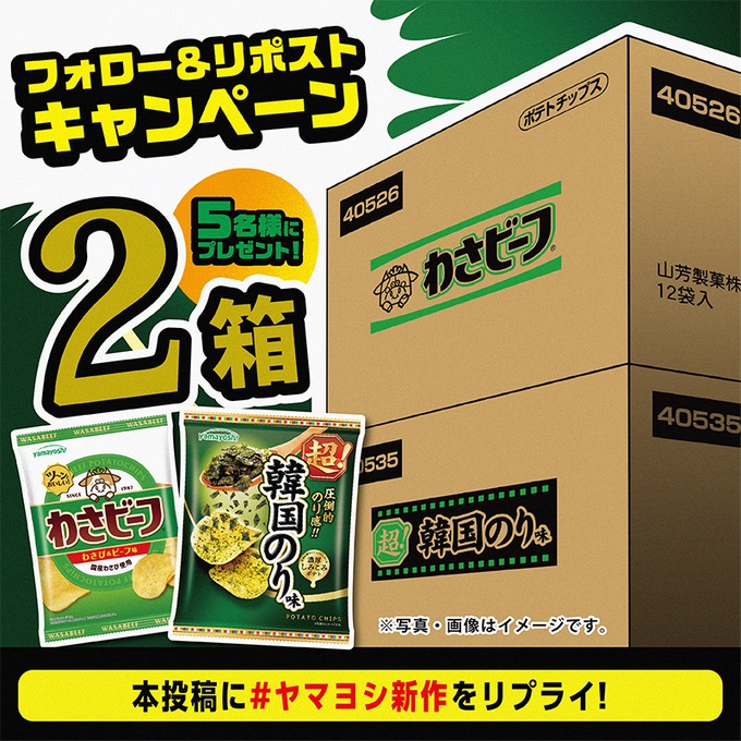 賞品:「わさビーフ1箱(12袋入)」「超!韓国のり味1箱(12袋入)」(5名様)