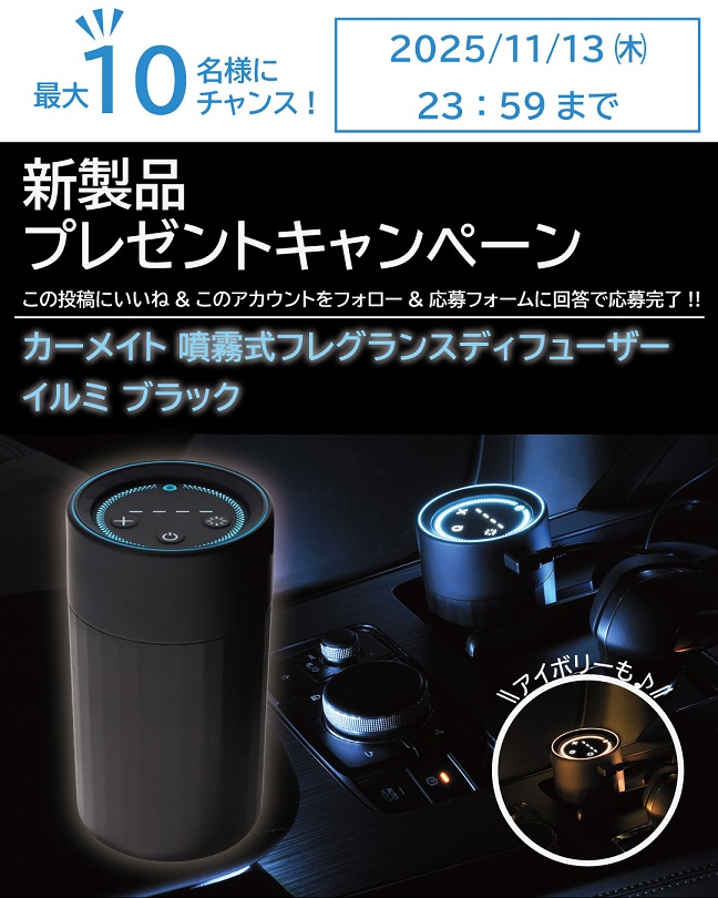 賞品:イルミネーション機能搭載の噴霧式フレグランスディフューザー(最大10名様)