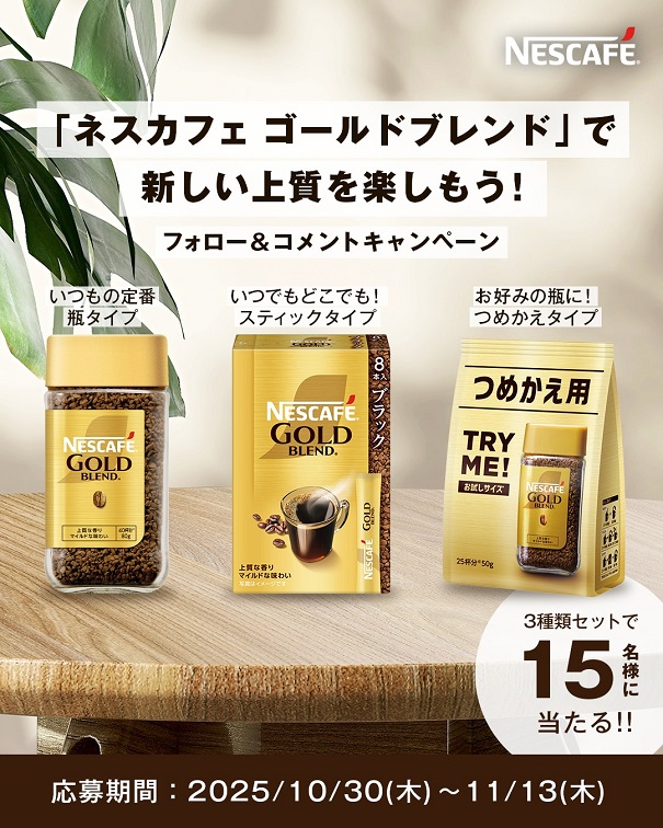 「ネスカフェ ゴールドブレンド」で”新しい上質”を楽しもう!フォロー&コメントキャンペーン