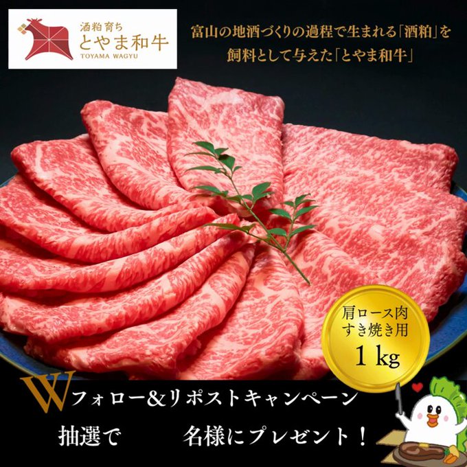 賞品:とやま和牛酒粕育ち 肩ロース肉すき焼き用 1kg(10名様)
