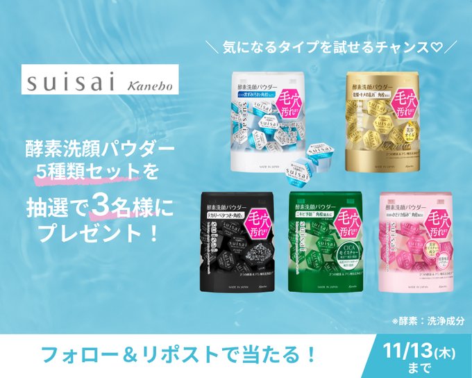 賞品:suisai 酵素洗顔パウダー 5種(3名様)