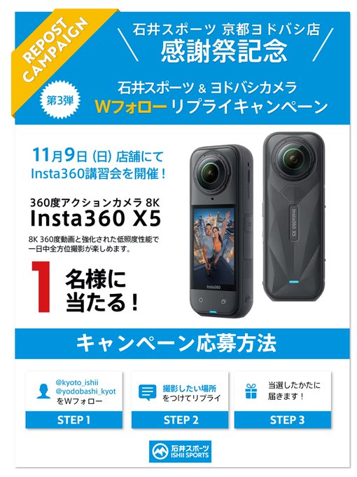 ① @kyoto_ishii & @yodobashi_kyot をWフォロー