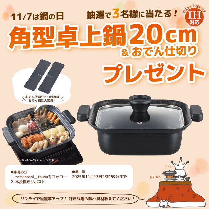 賞品:角型卓上鍋20cm&おでん仕切り(3名様)