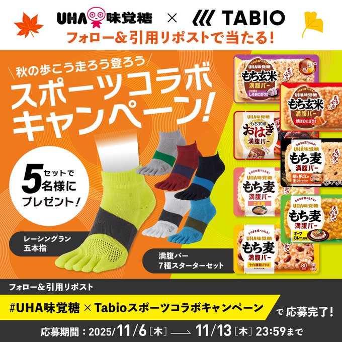 UHA味覚糖 × TABIO SPORTS コラボ企画 秋のスポーツコラボプレゼントキャンペーン