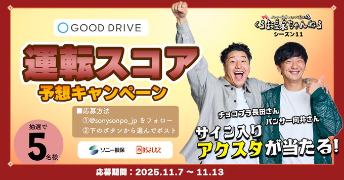 ソニー損保の自動車保険‐長田庄平さんの運転スコアを予想しよう!#キャンペーン