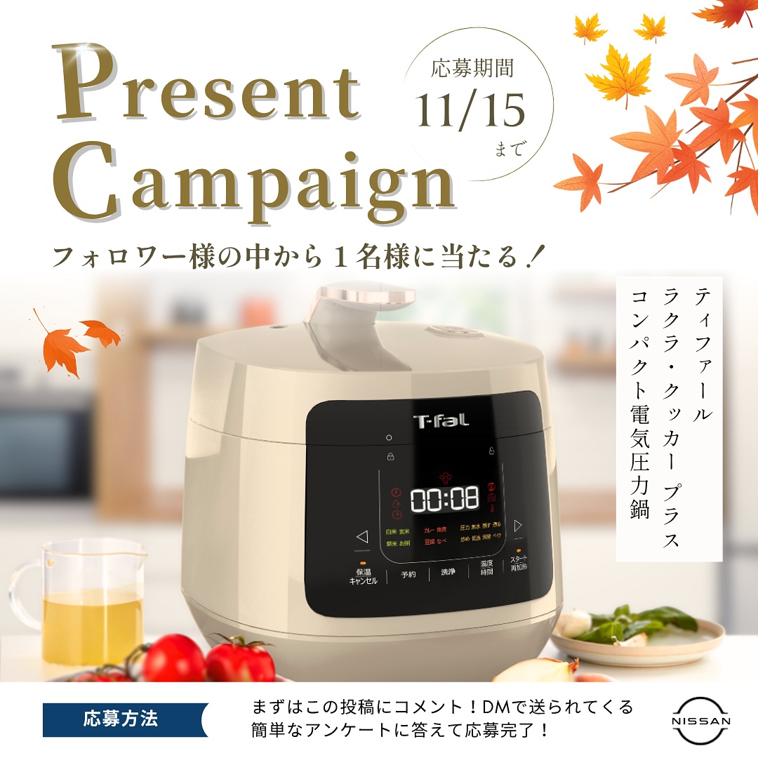 【Instagram懸賞】ティファール ラクラ・クッカープラス コンパクト電気圧力鍋を1名様にプレゼント