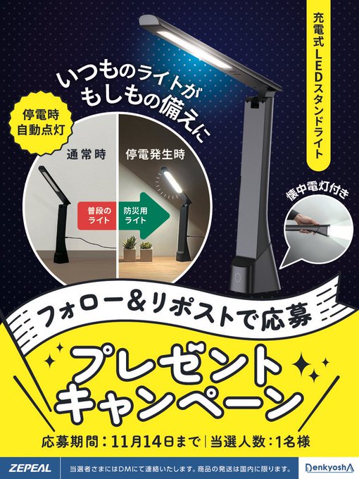 賞品:充電式LEDスタンドライト(1名様)