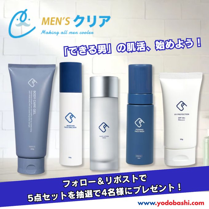【X懸賞】フルコース5点セットを4名様にプレゼント 2025.11.13ヨドバシ@メンズコスメ専門‐プレゼントキャンペーン 賞品:フルコース5点セット(4名様) 締切:2025年11月14日(金)👉フォロー&リポスト あなたのスキンケアで気をつけていることは?※詳細はキャンペーンページにてご確認ください。応募はこちらから