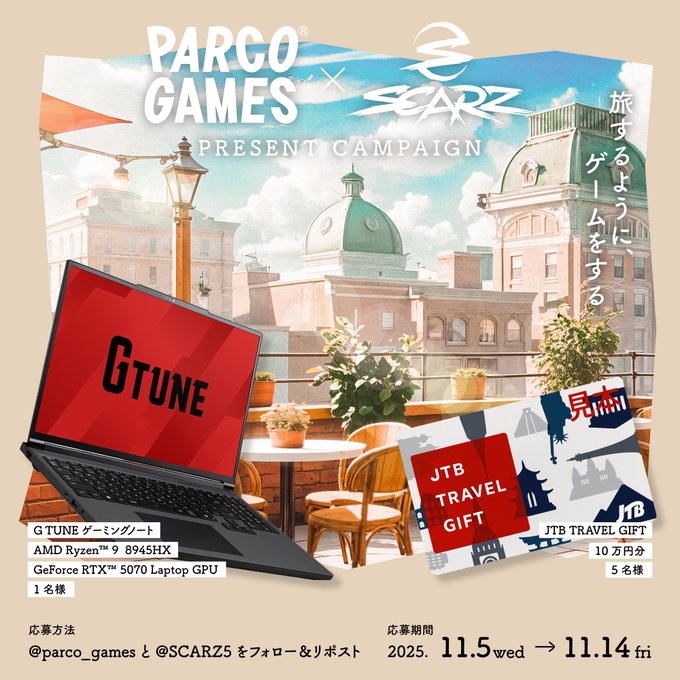 @parco_gamesと@SCARZ5をフォロー&キャンペーン対象ポストをリポストしてご応募ください。