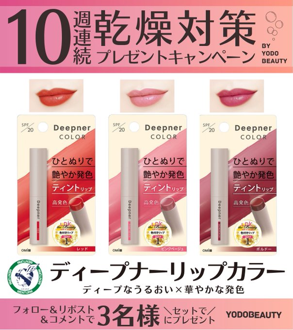 【X懸賞】ディープナーリップカラー3点セットを3名様にプレゼント