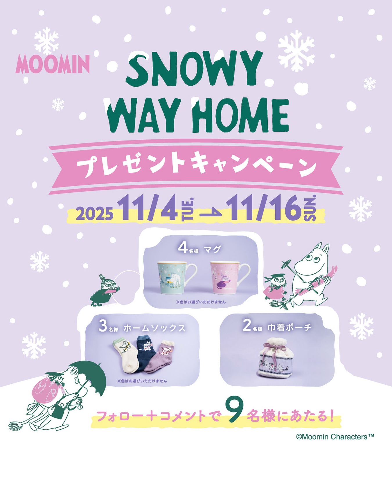 【Instagram懸賞】マグ、ホームソックス、巾着ポーチを9名様にプレゼント 2025.11.14ムーミン‐プレゼントキャンペーン 賞品:マグ、ホームソックス、巾着ポーチ(9名様) 締切:2025年11月16日(日)① @moominofficial_jpを「フォロー」 ② 投稿に欲しい商品を「コメント」※詳細はキャンペーンページにてご確認ください。応募はこちらから