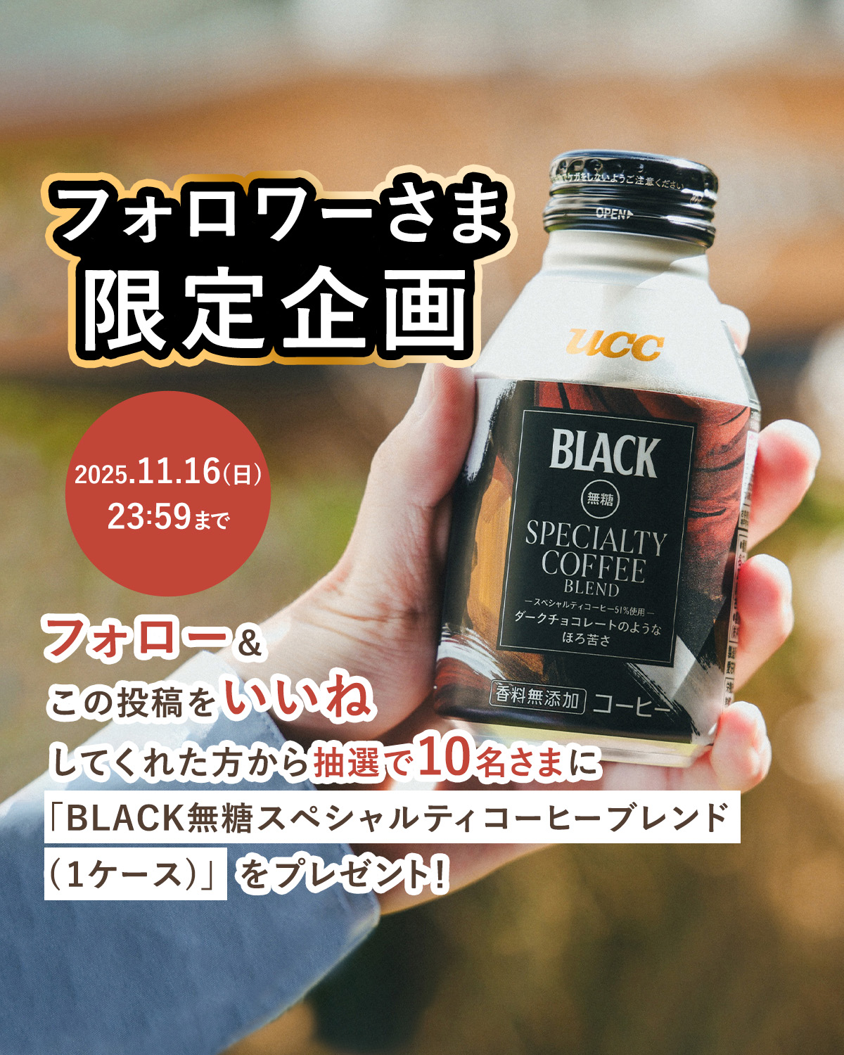 賞品:UCC BLACK無糖 スペシャルティコーヒーブレンド リキャップ缶 275g 1ケース(10名様)