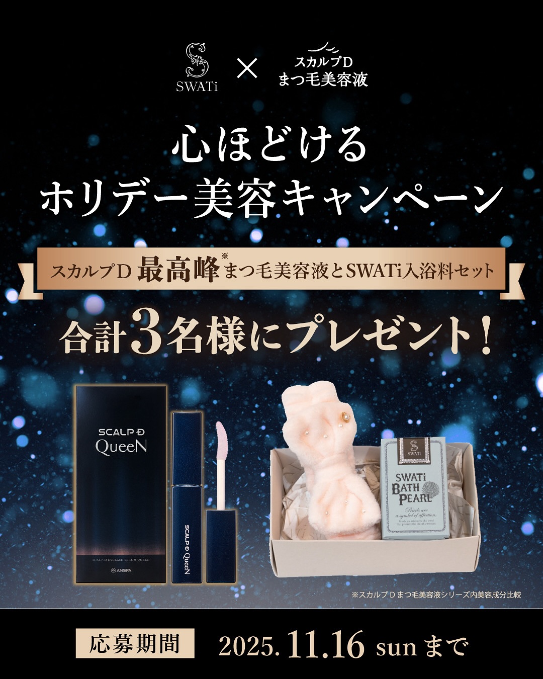 賞品:スカルプDまつ毛美容液&SWATi入浴料セット(3名様)