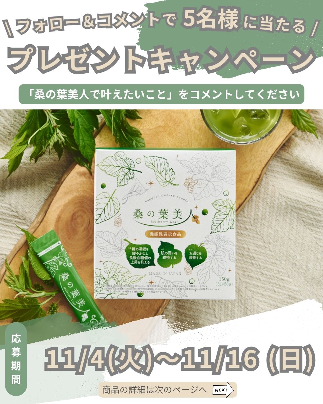 賞品:桑の葉美人(5名様)