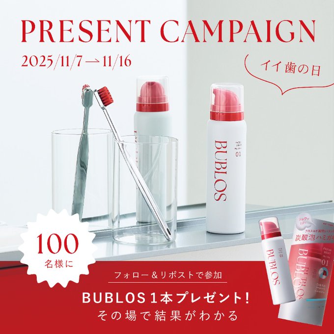 BUBLOS公式Xアカウントをフォロー&キャンペーン対象ポストをリポストして、キャンペーンページからご応募ください。