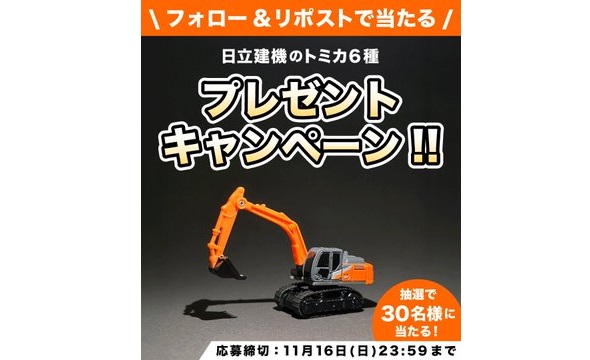 【X懸賞】日立建機のトミカ6種を30名様にプレゼント