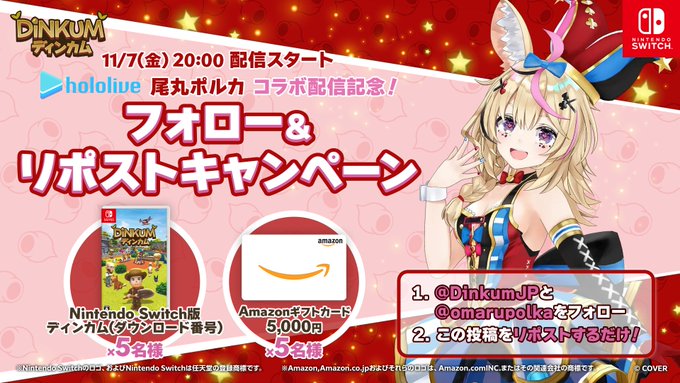 賞品:Nintendo Switch版『Dinkum(ディンカム)』、Amazonギフト券5,000円分(10名様)