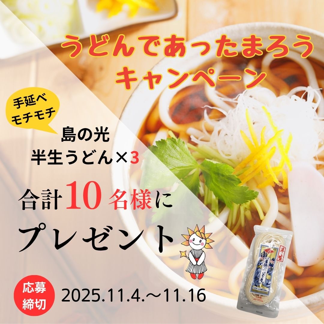 賞品:島の光 半生うどん(200g)×3(10名様)
