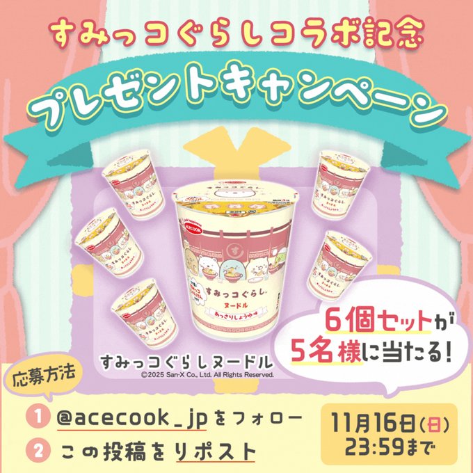 賞品:すみっコぐらしヌードル6個セット(5名様)
