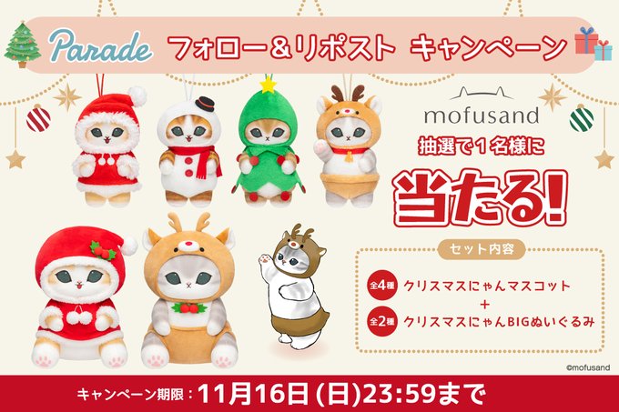 【X懸賞】クリスマスにゃんBIGぬいぐるみ全2種&マスコット全4種を1名様にプレゼント