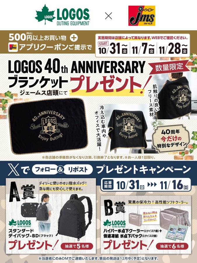 賞品:ロゴスの人気アイテム(11名様)