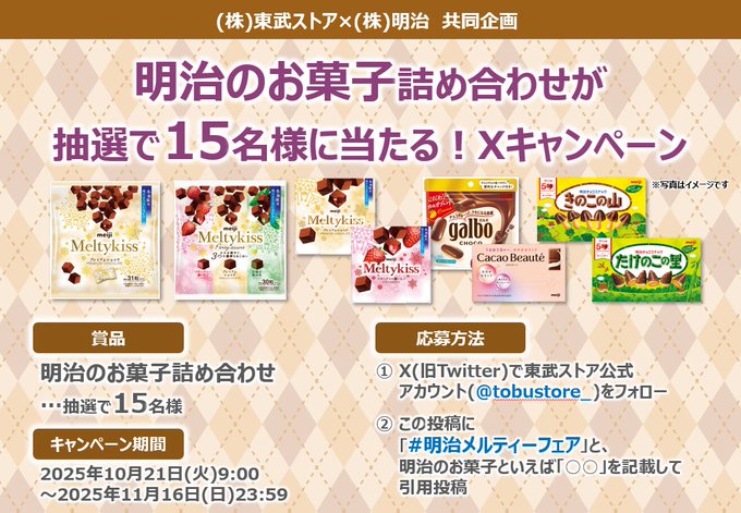 【X懸賞】明治のお菓子詰め合わせを15名様にプレゼント