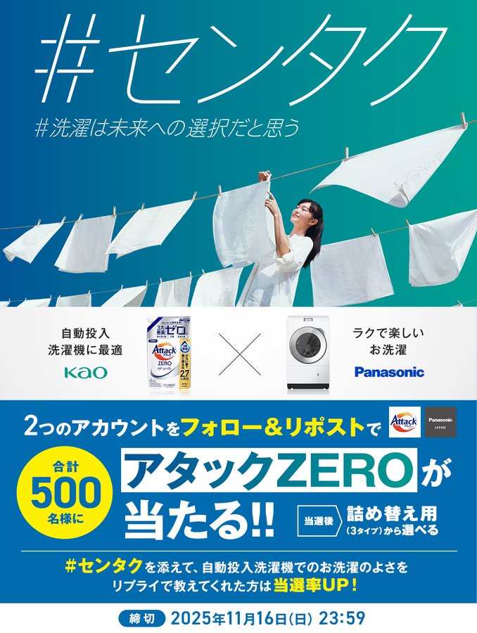 @kao_attackjp @Panasonic_cp をフォロー&キャンペーン対象ポストをリポストしてご応募ください。