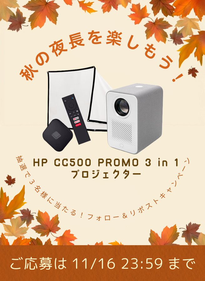 賞品:HP CC500 PROMO 3 in 1 プロジェクター(3名様)