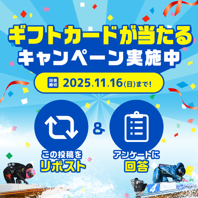 【X懸賞】Amazonギフトカード1,000円分を50名様にプレゼント 2025.11.15ボートレース‐ユーザーアンケートキャンペーン 賞品:Amazonギフトカード1,000円分(50名様) 締切:2025年11月16日(日)【応募方法】 ①投稿をリポスト🔁 ②アンケートを最後まで回答💬※詳細はキャンペーンページにてご確認ください。応募はこちらから