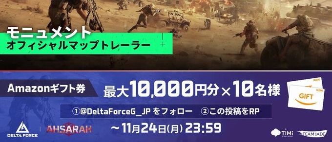 Delta Force Game Japan公式X(Twitter)アカウントをフォロー&キャンペーン対象ポストをリポストしてご応募ください。