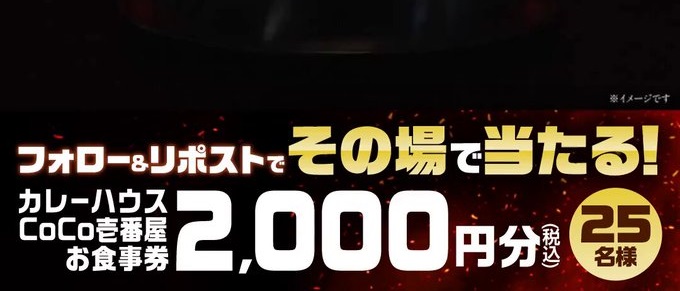カレーハウスCoCo壱番屋公式X(Twitter)アカウントをフォロー&キャンペーン対象ポストをリポストしてご応募ください。