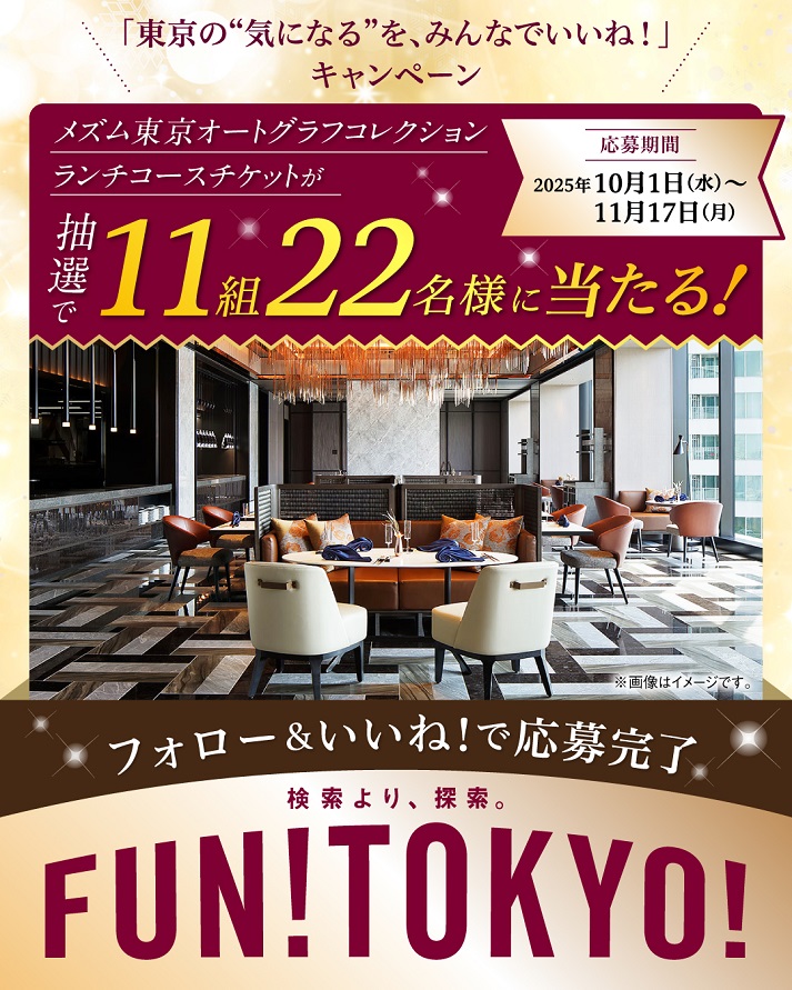 賞品:メズム東京オートグラフコレクション ランチコース チケット(11組22名様)